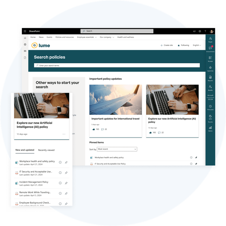 The modern digital workplace is a busy place. Create a go-to location employees can easily access for authoritative information.