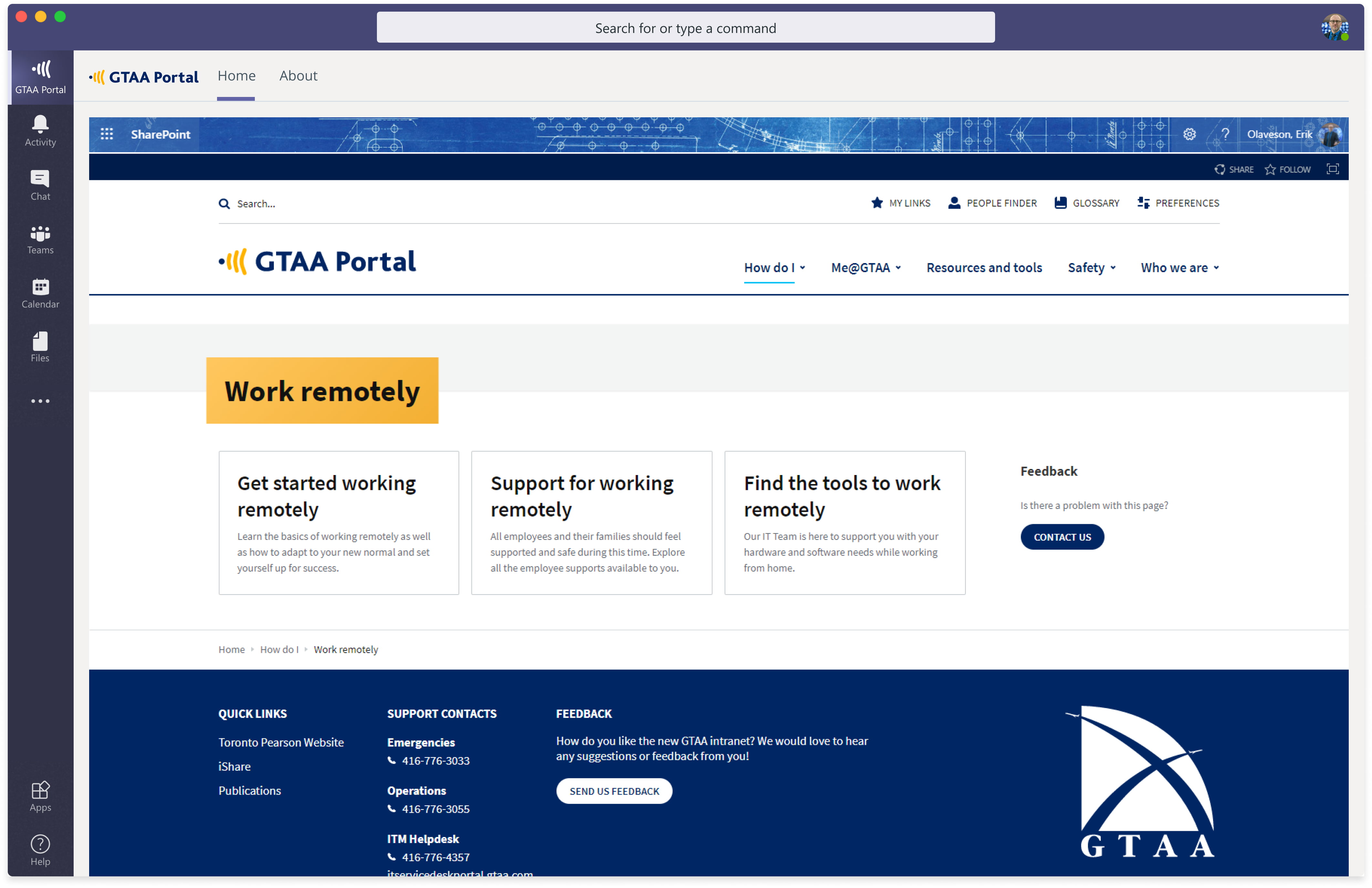 “Employees are increasingly using Microsoft Teams on their mobile devices. With our new GO Intranet Microsoft Teams app your intranet is only one tap away. Employees no longer need to open their browser or another app on their phone to access the intranet.” says Erik Olaveson, GTAA’s manager, digital experience. "With Teams centralizing our employees' digital workplace, we want to bring their experiences and resources to them."