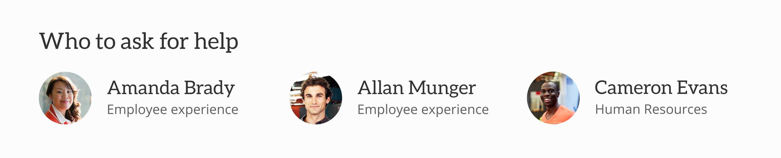 The people web part links directly to a content author, giving users someone to talk to if they get stuck. Part of why we add this is to support the job of a how-to page: to reduce the need for follow-ups. If your content is owned by a team rather than an individual, you can use text links to link to group emails, such as it@yourcompany.com.