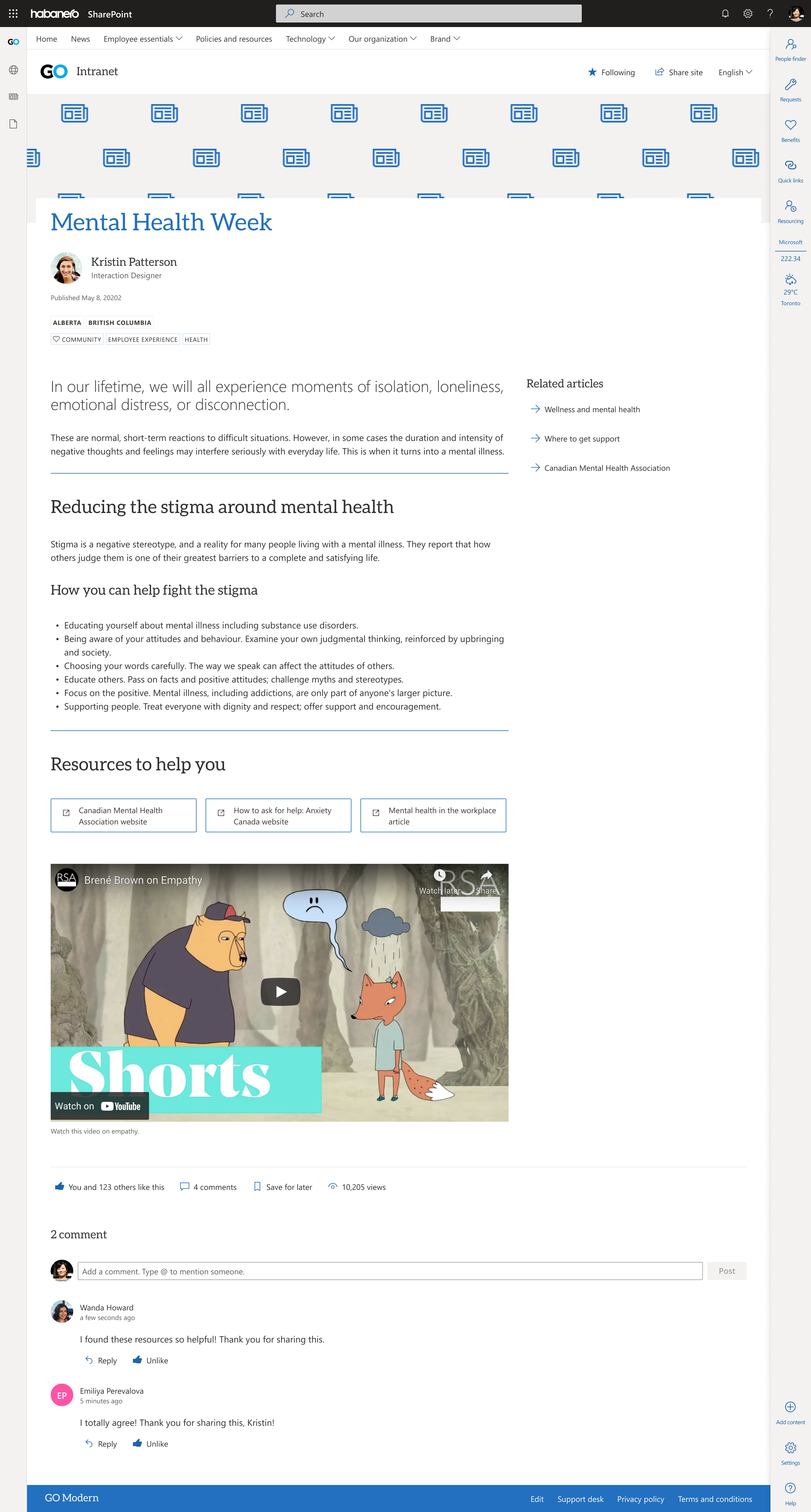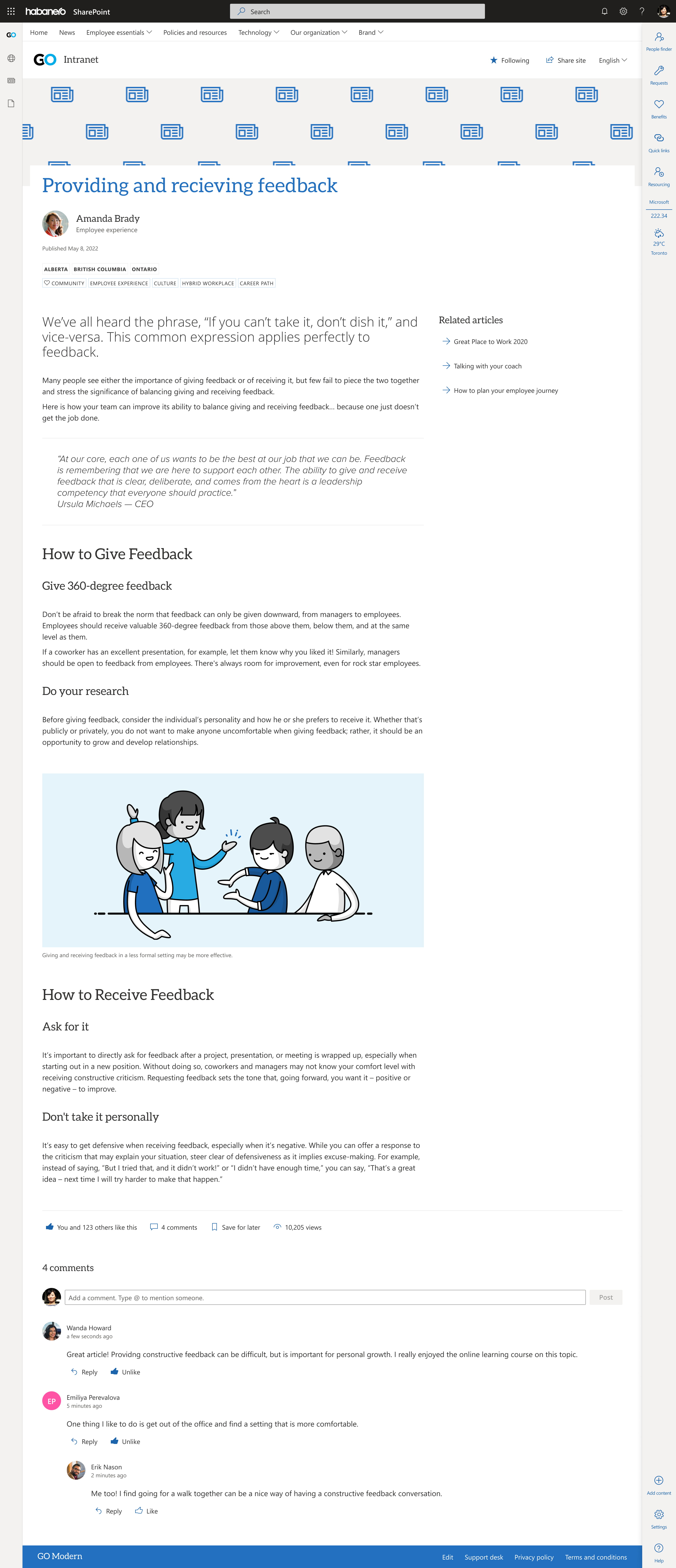 News articles are a great place to encourage discussion. Even if you’re not using GO Intranet, you can encourage conversation by turning on SharePoint’s out-of-the-box page comments.